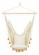 Závesné kreslo inšpirované boho štýlom je ideálne na oddych počas teplých letných dní. Kreslo je vyrobené z vysokokvalitných a odolných materiálov a má hrubé vankúše pre maximálne pohodlie pri používaní. Pevná konštrukcia pozostávajúca z hrubého lana a dreveného nosníka zaručuje bezpečné používanie. Vďaka háku, ktorý je umiestnený v hornej časti, môžete kreslo zavesiť kdekoľvek budete chcieť. Oranžové brmbolce dodávajú dizajnu kresla čaro bohémskeho štýlu a robia z neho doplnok, ktorý sa hodí do akéhokoľvek priestoru.