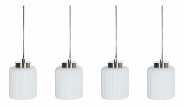 Táto nádherná závesná lampa v industriálnom štýle je skutočne výnimočným kúskom, ktorý bez pochýb skrášli vašu domácnosť. Kontrastné sklenené tienidlá v bielej farbe sú ozdobené lesklým mosadzným prvkom a sú zárukou príjemného osvetlenia v akomkoľvek priestore, či už ide o obývaciu izbu, spálňu alebo jedáleň.