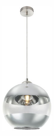 Závesná lampa niklová matná, sklo - chrómový dym, D: 300, H: 1200, bez 1xE27 40W 230V