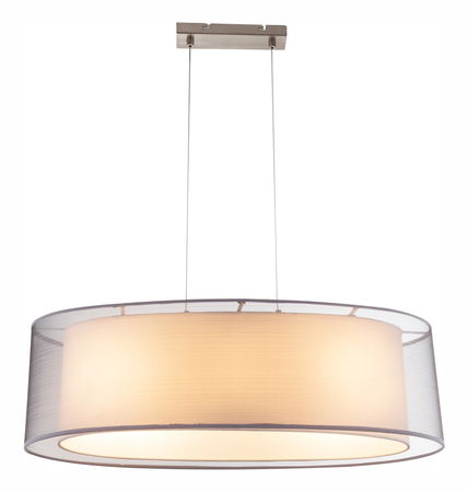 Závesné svietidlo nikel matný plast textília sivá satinovaný akryl výška tienidla 20 cm DxŠxV: 650x250x1400 bez 3xE27 60W 230V.