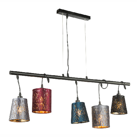 Závesná lampa kovová čierna, zamatová viacfarebná, svietidlá s výškovo nastaviteľným káblom, dxšxv: 1000x130x1400, bez 5xE14 25W 230V
