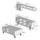 hrúbka: 18 mm, veľkosť TV jednotky: šírka: 160 cm, výška: 56,2 cm, hĺbka: 35 cm, veľkosť nástennej police: šírka: 115,8 cm, výška: 18,6 cm, hĺbka: 20 cm, veľkosť skrinky: šírka : 44,2 cm, výška: 44,2 cm, hĺbka: 25 cm, rozmer konferenčného stolíka: šírka: 105 cm, výška: 38,2 cm, hĺbka: 60 cm