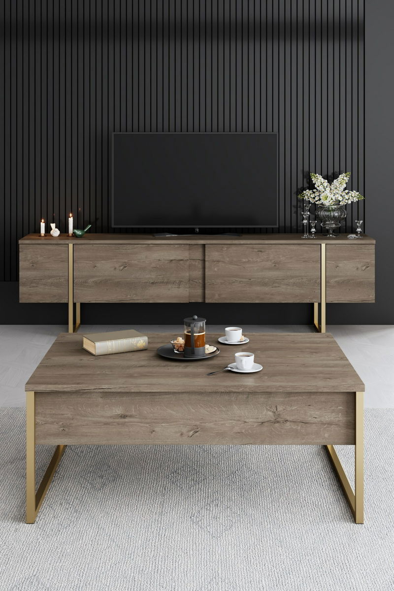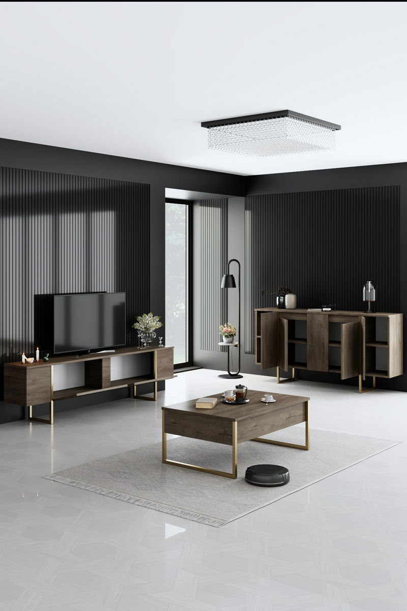 Zostava nábytku do obývacej izby Luna 1 (Orech + Zlatá)