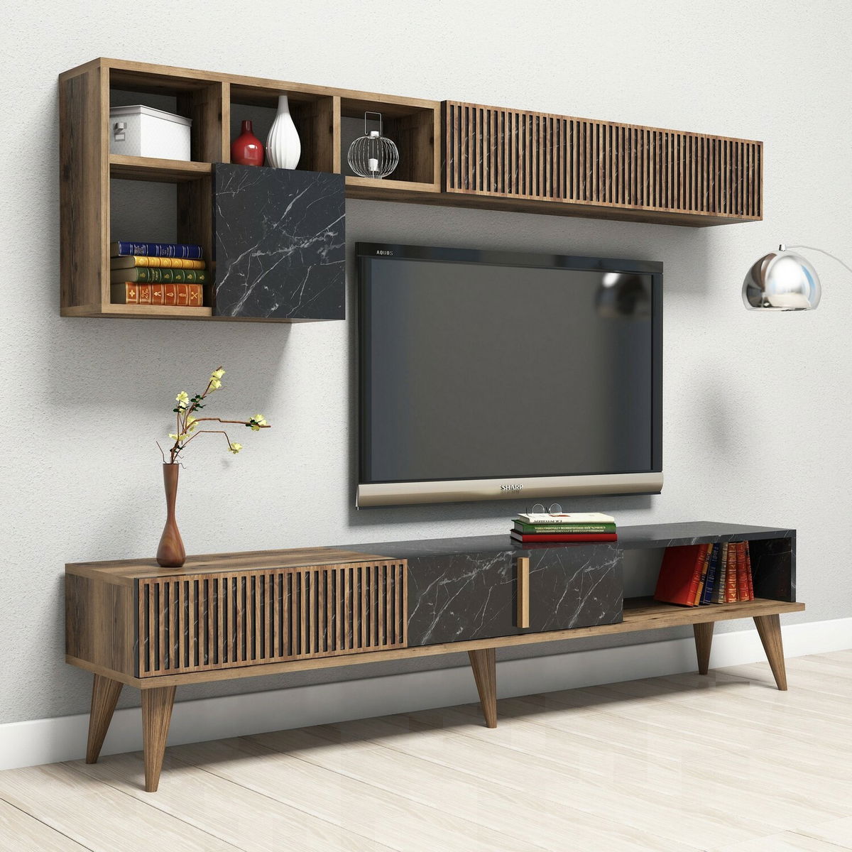 ZobraziťObývacia stena - Michelle (Orech + Čierna) je skvelým doplnkom pre vašu obývačku. S výškou 40 cm, šírkou 180 cm a hĺbkou 35 cm poskytuje dostatok úložného priestoru pre vaše veci. Je vyrobená z kvalitného dreva v kombinácii s čiernou farbou, čo jej dodáva štýlový a elegantný vzhľad. Táto obývacia stena je ideálnym riešením pre usporiadanie a organizáciu vášho televízneho a audiovizuálneho vybavenia. S jej moderným dizajnom a praktickými policami poskytuje dostatok miesta na umiestnenie kníh, dekorácií a iných vecí. Nechajte sa očariť touto funkčnou a atraktívnou obývacou stenou - Michelle (Orech + Čierna) pre dokonalé zariadenie vášho domova.