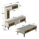 hrúbka: 18 mm, veľkosť TV jednotky: šírka: 180 cm, výška: 52 cm, hĺbka: 35 cm, veľkosť nástennej police: šírka: 27,4 cm, výška: 84 cm, hĺbka: 20 cm, (2 kusy) veľkosť konferenčného stolíka: šírka: 105 cm, výška: 34,6 cm, hĺbka: 60 cm