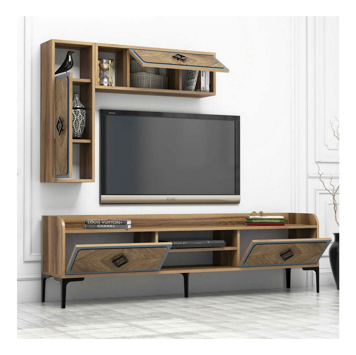 Zostava nábytku do obývacej izby Simba (orech + modrá)