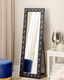 Toto štýlové stojacie zrkadlo premení vašu spálňu na elegantný priestor. Zrkadlo s precíznou ručnou výrobou je čalúnené kvalitným polyesterovým zamatom, ktorý dopĺňajú ozdobné sklenené kamienky. Stane sa očarujúcou dekoráciou akejkoľvek miestnosti zariadenej či už v modernom alebo boho štýle. Vďaka kovovému stojanu ho možno umiestniť kamkoľvek. Pomocou háčikov na zadnej strane ho možno horizontálne alebo vertikálne zavesiť aj na stenu.