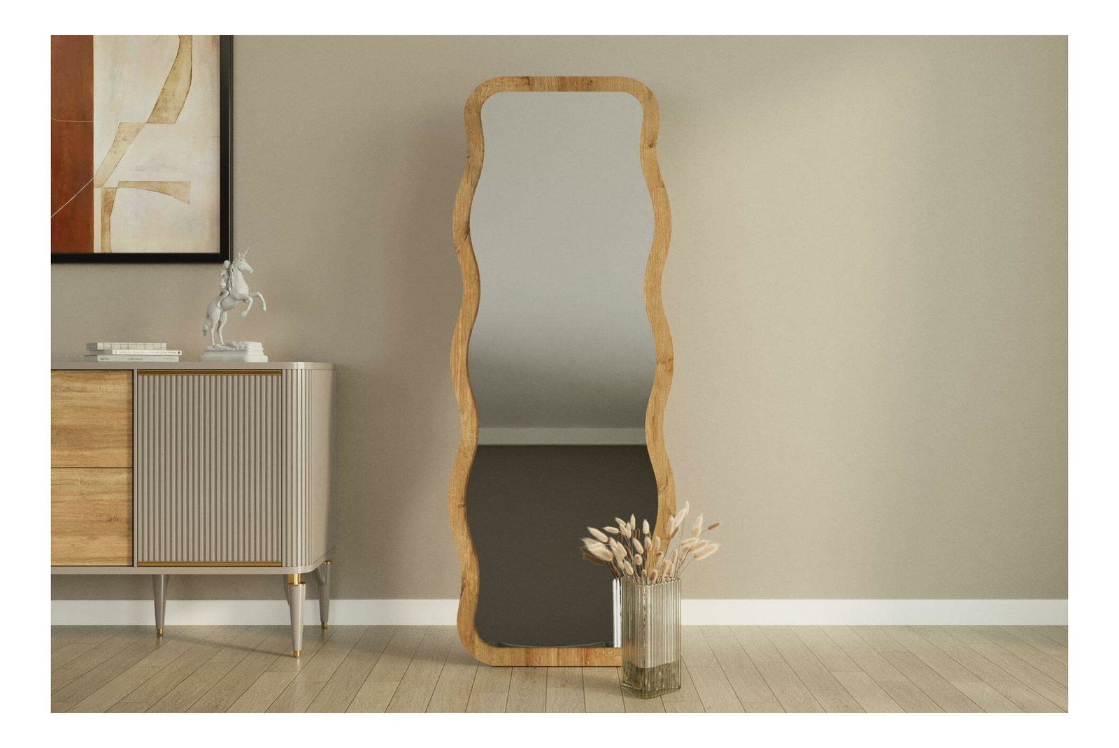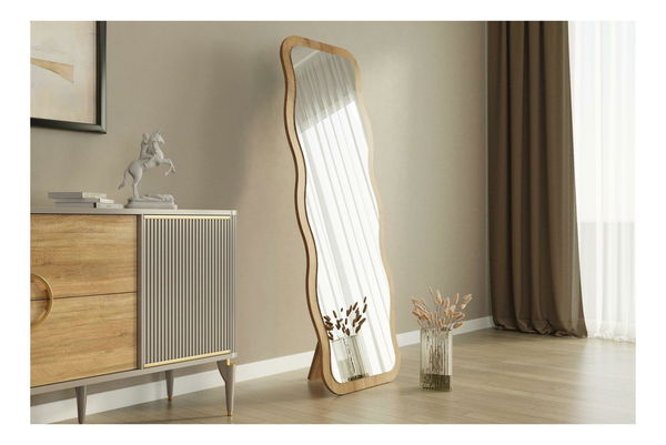 Zrkadlo Aureola v prírodnom prevedení prináša do vášho interiéru kombináciu funkčnosti a štýlu. Jeho organický tvar s jemne vlnitým rámom v prírodnom dekore vytvára príjemnú atmosféru a vynikajúco dopĺňa moderný aj rustikálny nábytok do spálne, obývačky či predsiene. Skvele sa hodí napríklad k rustikálnym šatníkovým skriňam, ktoré podčiarknu jeho prírodný charakter.
