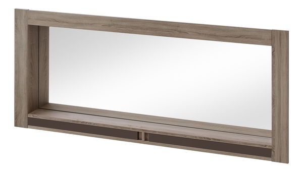 Zrkadlo vsadené do rámu a tak si môžete na jeho okraj uložiť aj nejaké drobnosti. Príjemná kombinácia farby dreva dub truflový a hnedý lesk.