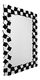 Dekoratívnosť a funkčnosť sa spája v tomto originálnom kúsku. Toto zrkadlo bude štýlovým a sviežim doplnkom vo Vašej domácnosti. Okrem iného aj veľmi praktickým, keď sa budete pripravovať do práce, na oslavu, či na prechádzku. Rám je tvorený čiernymi a bielymi štvorcami.