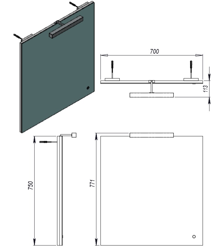 Zrkadlo moderného dizajnu s LED podsvietením a sklenenou poličkou, ktorú môžete využiť na hygienické potreby, parfumy alebo iné kozmetické doplnky. Zrkadlo má pohybový senzor, ktorým sa zapína svetlo zrkadla.