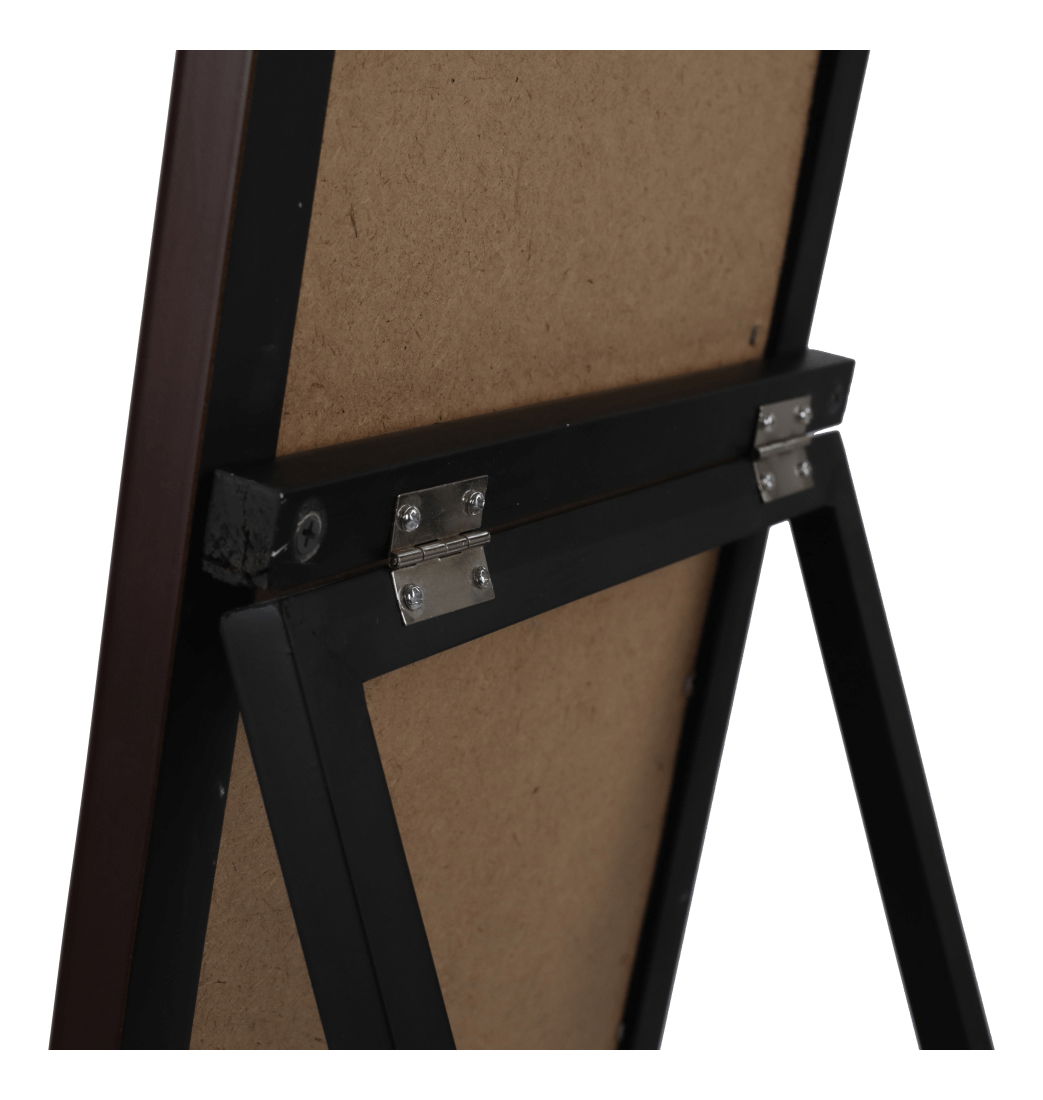Zrkadlo Meg Typ 4 výška 145 cm Hnedá je elegantný kúsok, ktorý bude pôsobiť dobre v moderných aj tradičných interiéroch. Toto vysoké zrkadlo je dizajnovo veľmi zaujímavé a originálne. Je podopreté výklopnými nožičkami, a tak si môžete vybrať, či ho chcete položiť na zem alebo ho pritiahnuť bližšie k sebe. Zrkadlo má elegantný drevený tmavý rám, ktorý sa hodí do rôznych typov interiérov. Tento produkt oceníte najmä v spálni, predsieni alebo hale. Materiál, z ktorého je vyrábaný tento produkt, je drevo a sklo. Rozmery vnútornej časti zrkadla sú 29x145 cm a jeho celková hmotnosť je 5,5 kg.