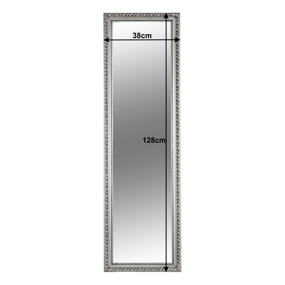 Zrkadlo Meg Typ 5 vo výške 128 cm so strieborným rámom je veľmi elegantný kúsok, ktorý dodá Vášmu interiéru originálny štýl. Tento kus zrkadla s dreveným rámom v striebrnej farbe sa stane skvelým doplnkom pri chystaní sa do práce alebo na oslavu. Jeho rozmery sú 38x128 cm, čo je dostatočne veľké na každodenné použitie. Materiál zrkadla je kombinácia dreva a skla, ktorá poskytuje jeho trvanlivosť a odolnosť. Jeho nádherný ozdobný rám zabezpečuje, že bude vynikať v každom interiéri. Zrkadlo Meg Typ 5 s výškou 128 cm a strieborným rámom je skvelou voľbou pre tých, ktorí chcú pridať do svojho interiéru kúsok elegancie.