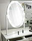 Vďaka LED žiarovkám a elegantnému oválnemu tvaru pôsobí toto voľne stojace zrkadlo veľmi elegantne a štýlovo. Skrášlite svoj interiér týmto užitočným doplnkom a užite si hrejivé LED svetlo, ktoré sa dá jednoducho ovládať dotykovým vypínačom. Toto biele zrkadlo bude skvelým doplnkom na toaletný stolík alebo komodu.