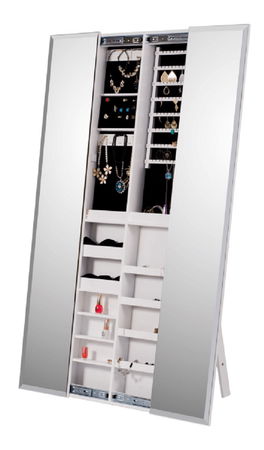 Ktorá z nás by netúžila po veľkom zrkadle priamo v spálni či šatníku? Pre každú ženu je nevyhnutným a dôležitým doplnkom práve zrkadlo. Pôvab sa ukrýva v každej z nás, len občas potrebujeme niekoho či niečo, čo nám ho pomôže nájsť. V nádhernom zrkadle ONEON svoju krásu a eleganciu uvidíte hneď. Zrkadlo je nielen oknom do duše, ale aj kráľovstvo šperkov. Za posúvacími dverami sa nachádza úložný priestor pre vaše milované doplnky, šperky či kozmetiku, vďaka čomu sa vám už nikdy nič nestratí. Vyrobené je v elegantnej bielej farbe z MDF. Získajte neoceniteľný prehľad a poriadok vo vašich vecičkách a zabezpečte im štýlový nový domov.