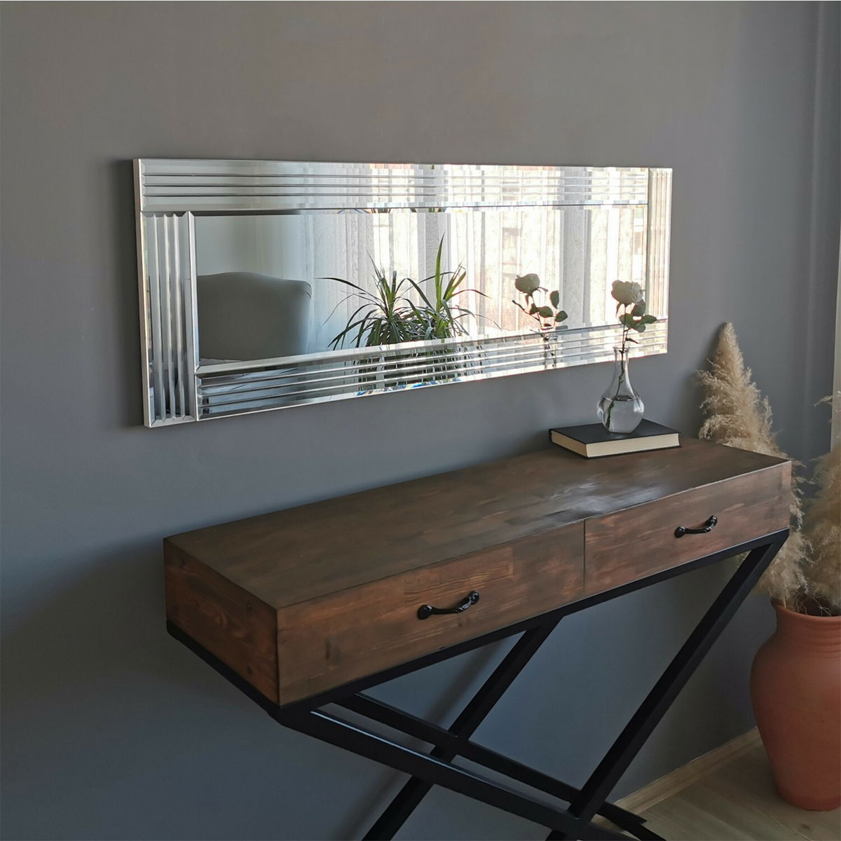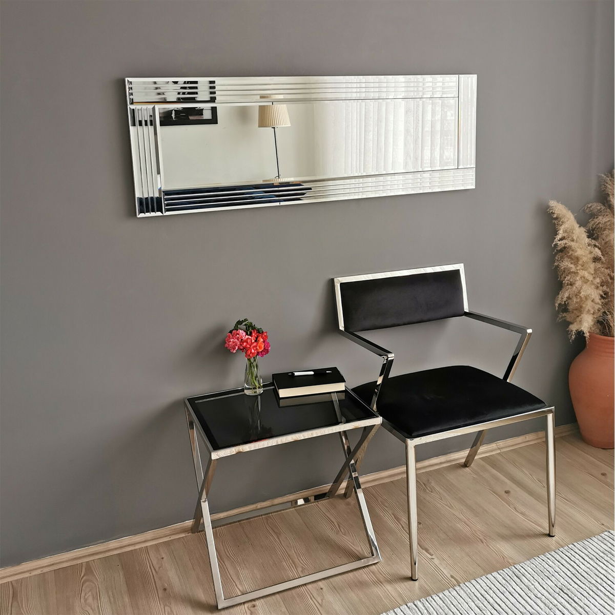 Zrkadlo - Strieborná I je výrobok, ktorý prináša štýlový a elegantný dotyk do vášho domova. S výškou 40 cm, šírkou 120 cm a hĺbkou 2 cm je to ideálne zrkadlo na zavesenie na stenu. Jeho striebrný odtieň dodáva miestnosti sofistikovaný vzhľad a rozjasní ju. S jeho kvalitným spracovaním a jednoduchým dizajnom je ideálnym doplnkom do každej miestnosti. Takže ak hľadáte zrkadlo, ktoré zvýrazní krásu vášho interiéru, Zrkadlo - Strieborná I je pre vás to správne rozhodnutie.